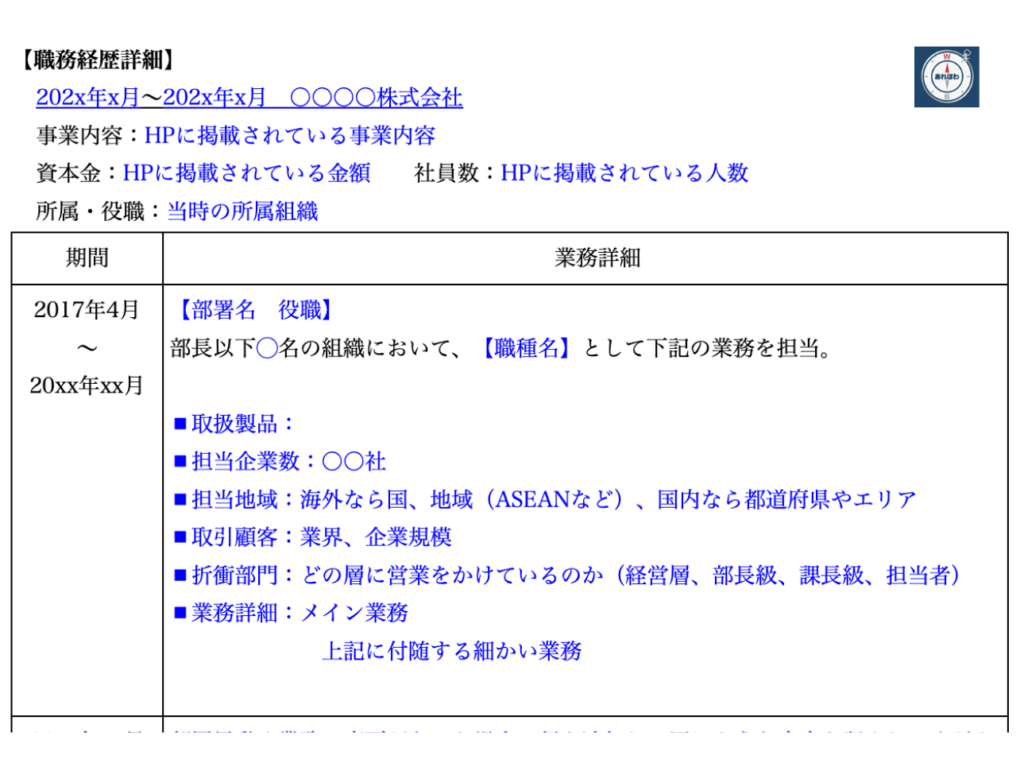 - 職務詳細は応募職種に関する内容をメインに書く